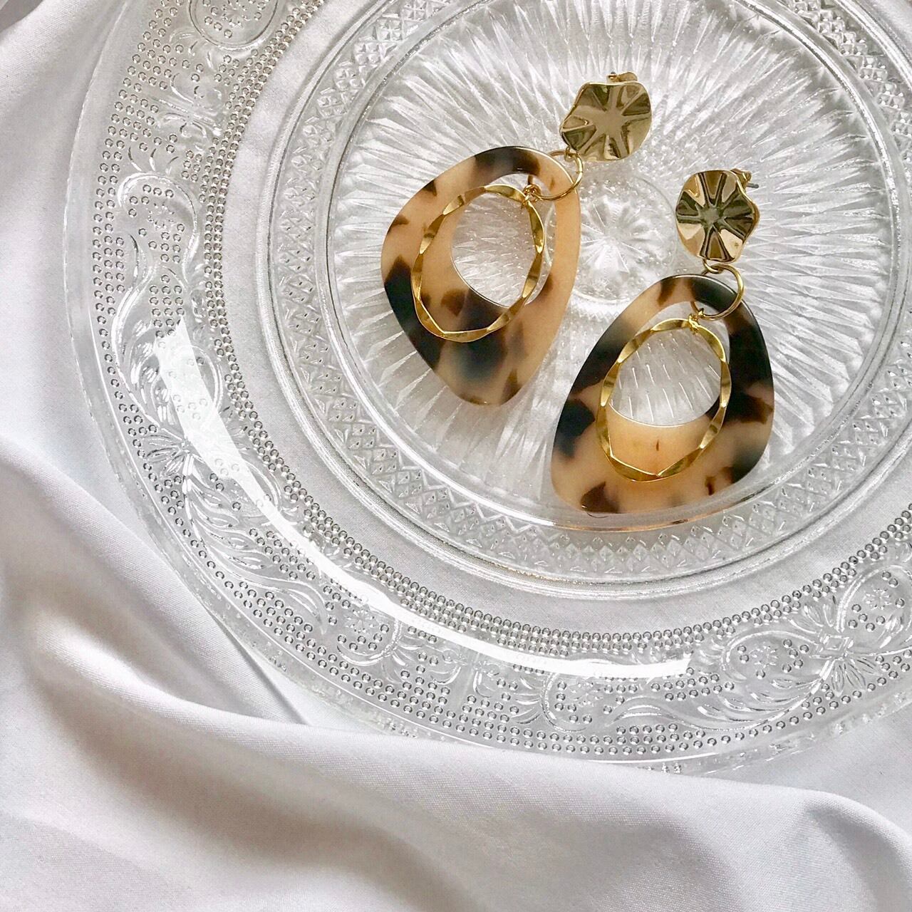 ベージュ ピアス... 真鍮・チタン(ポスト部分)・アクリル